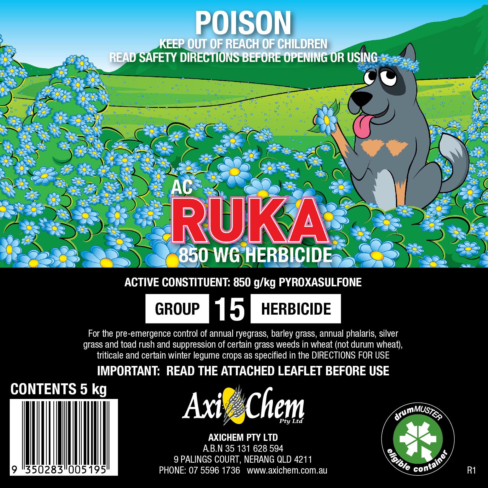 For the pre-emergence control of annual ryegrass, barley grass, annual phalaris, silver grass and toad rush and suppression of certain grass weeds in wheat (not durum wheat), triticale and certain winter legume crops as specified in the DIRECTIONS FOR USE